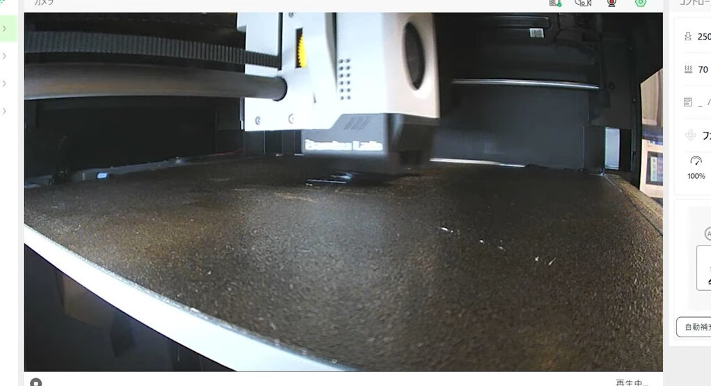 実際の映像を見てみると、エクストルーダーの動きがしっかり確認できます。P2Sのカメラは映像以外にも、不具合チェックや識別の役割があります。