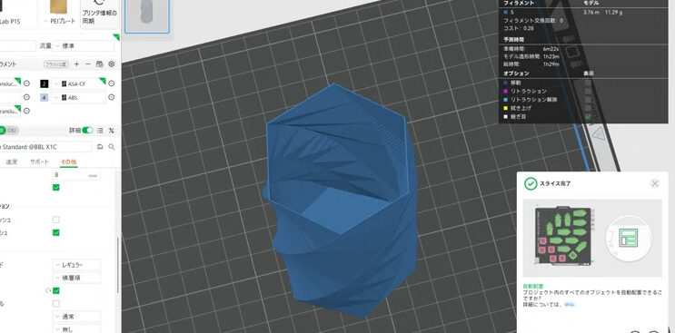 専用サポート材は、モデルとサポートの間に少量だけ使うくらいなので、コスパよくプリントできます。