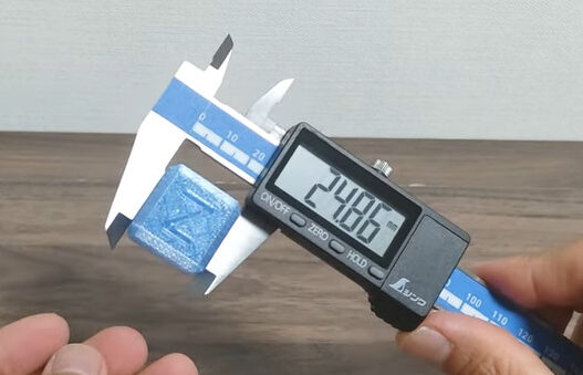 続いて、25mm角のキューブ形状をプリントして誤差を測ってみたいと思います。