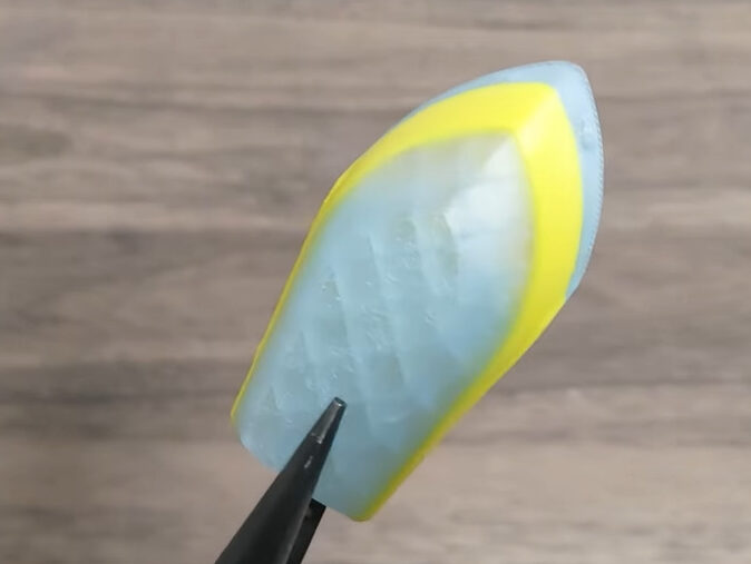 ちょっとした模様に見えますね。重点形状を色々と変えるのも面白そうです。黄色いPLAと組み合わせていますが、キレイに接合されています。